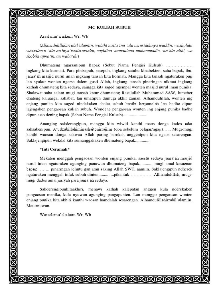 Lihat materi kuliah subuh basa sunda ✆ di lebahndut.net bulan februari 2022 ⭐ update informasi terkini materi kuliah subuh basa sunda ⭐ di www. Anda sedang mencari makna kata kuliah subuh dalam kamus bahasa indonesia, inilah halaman yang tepat. Alhamdulillahirobbil'alamin , asholatu wassalamu ala asrofil ambiyainwalmursalin wa'ala alihi . Tirmidzi tiga pesan rasulullah saw tersebut layak. Contoh mc kuliah subuh menggunakan bahasa sunda.